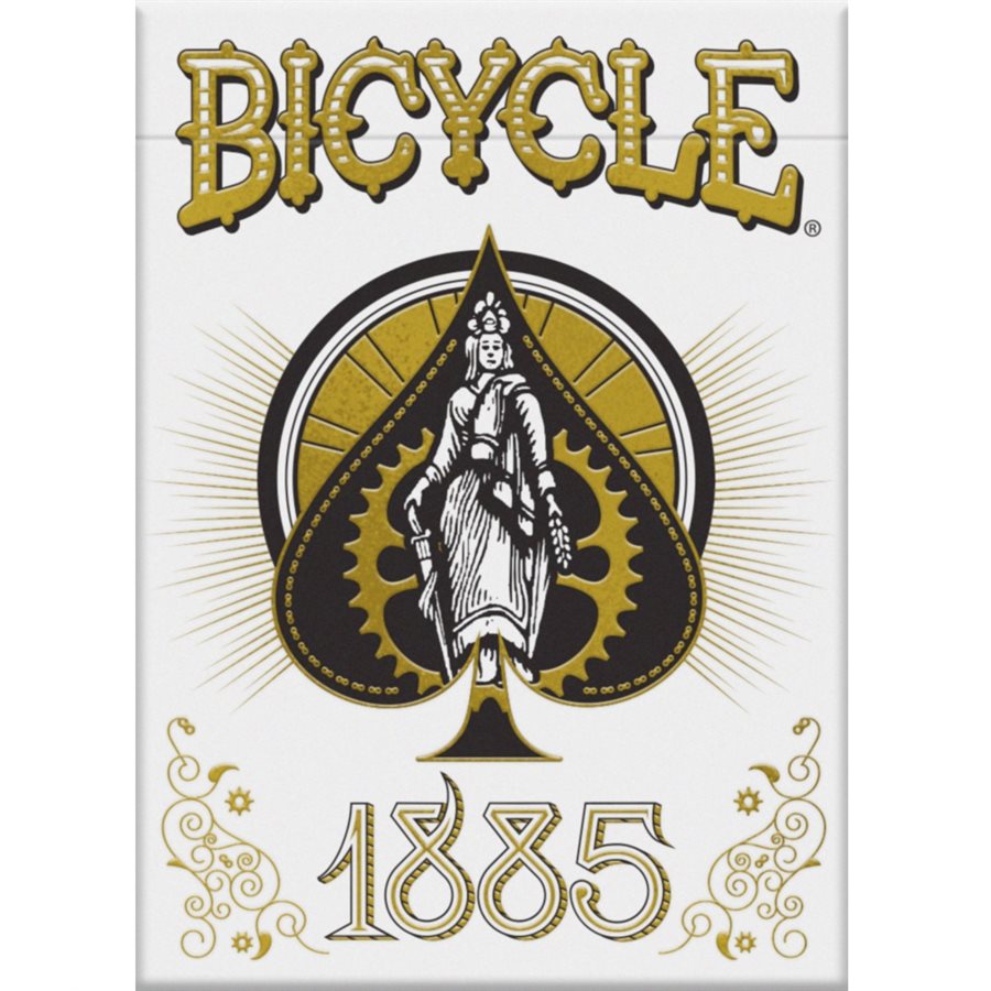 The Bicycle® 1885 playing card deck celebrates the heritage and history of the Bicycle® brand that has been proudly produced in the USA for over 130 years. This hand illustrated deck by Cincinnati artist, James Billiter, blends the Victorian ornate elegance and the mechanical designs of era gone by for one fabulous deck of playing cards.